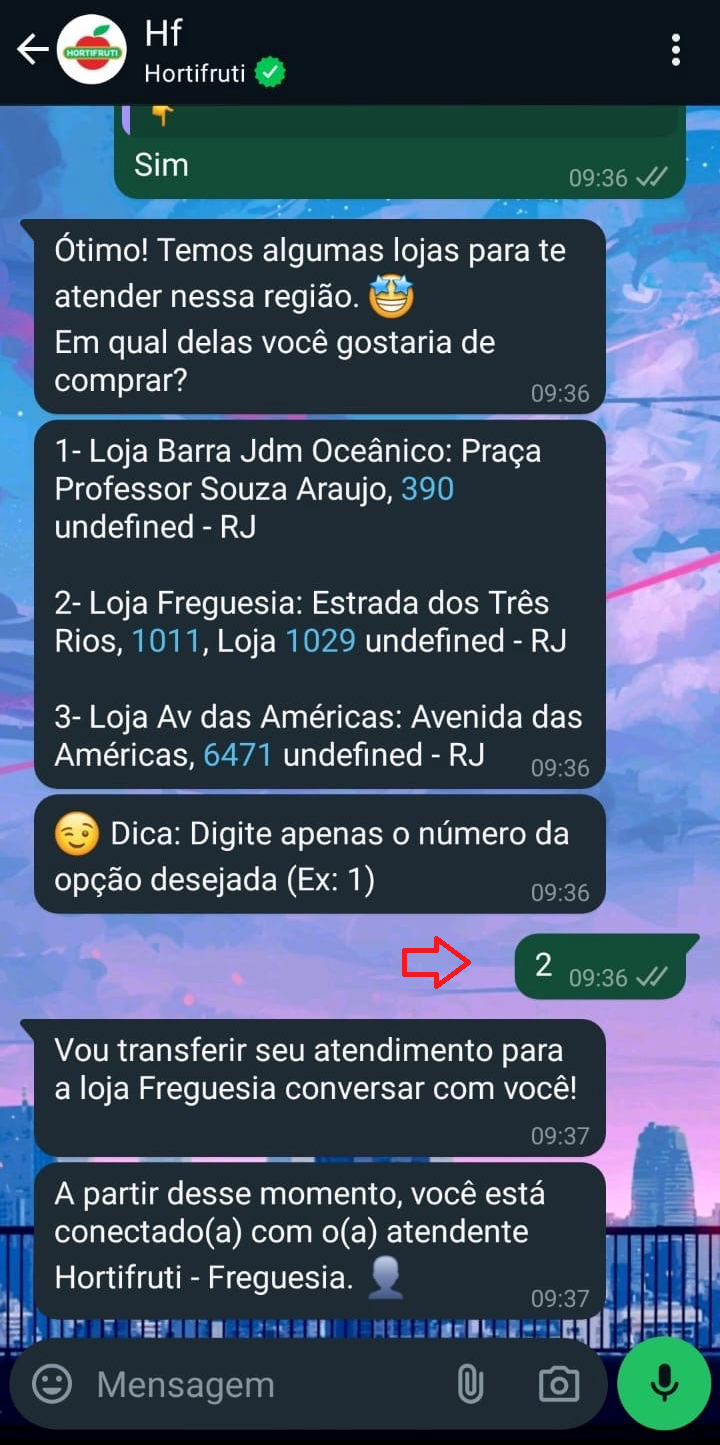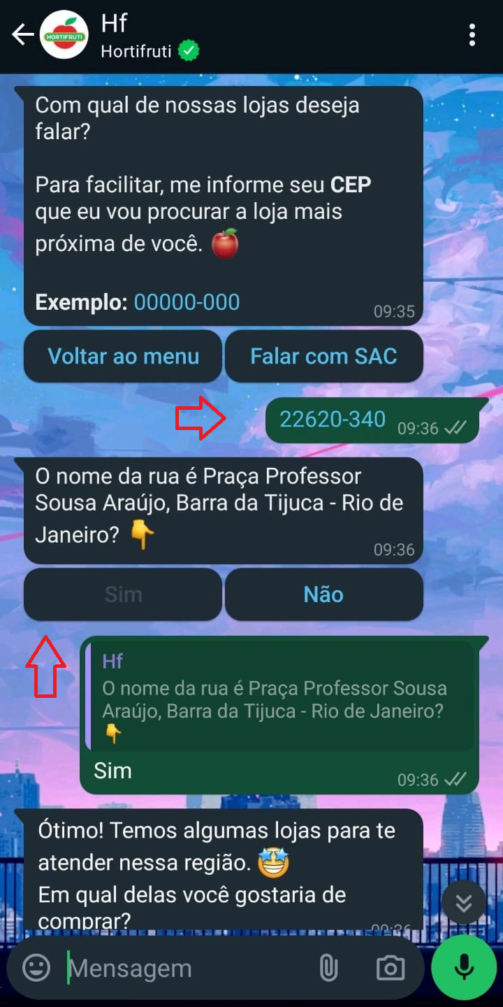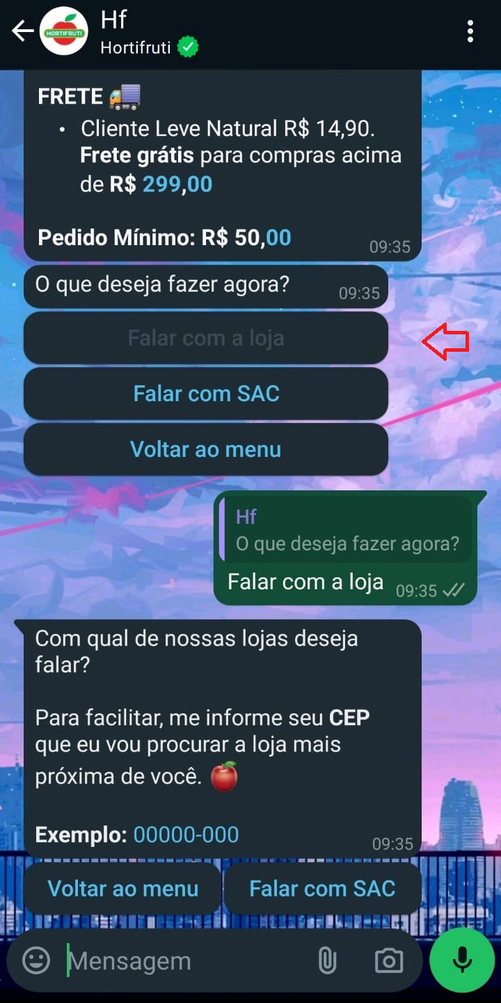 Vamos perguntar o seu CEP, assim conseguimos ver quais lojas estão pertinho de você. Após informá-lo e confirmar o endereço, vão aparecer algumas lojas, aí é só escolher a que você quer falar! ❤