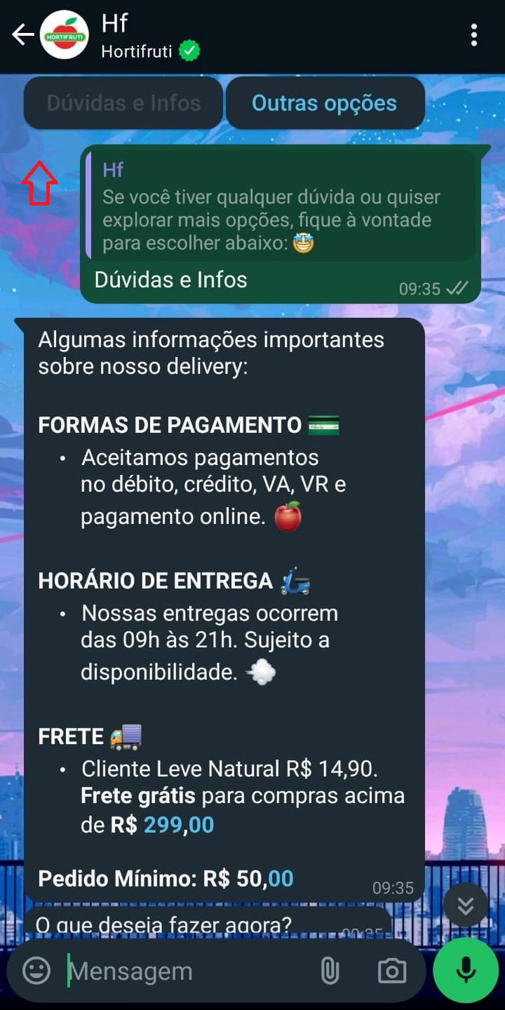 Para falar com a loja, basta adicioná-lo ao seus contatos e mandar uma mensagem qualquer no WhatsApp. Nesse momento, vão aparecer algumas opções, você deve clicar em "Dúvidas e Infos" e depois em "Falar com a loja".